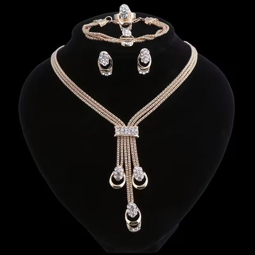 "Vattenfall" Lyxigt Smyckesset i Guldton med Kaskaddesign & Kristallstrass - 4 Delar